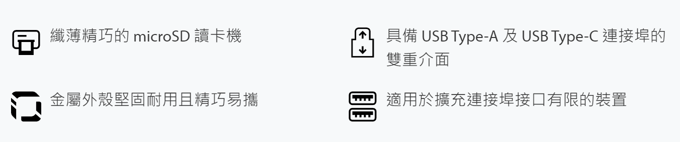 適用於 USB Type-C 及 MicroSD 記憶卡