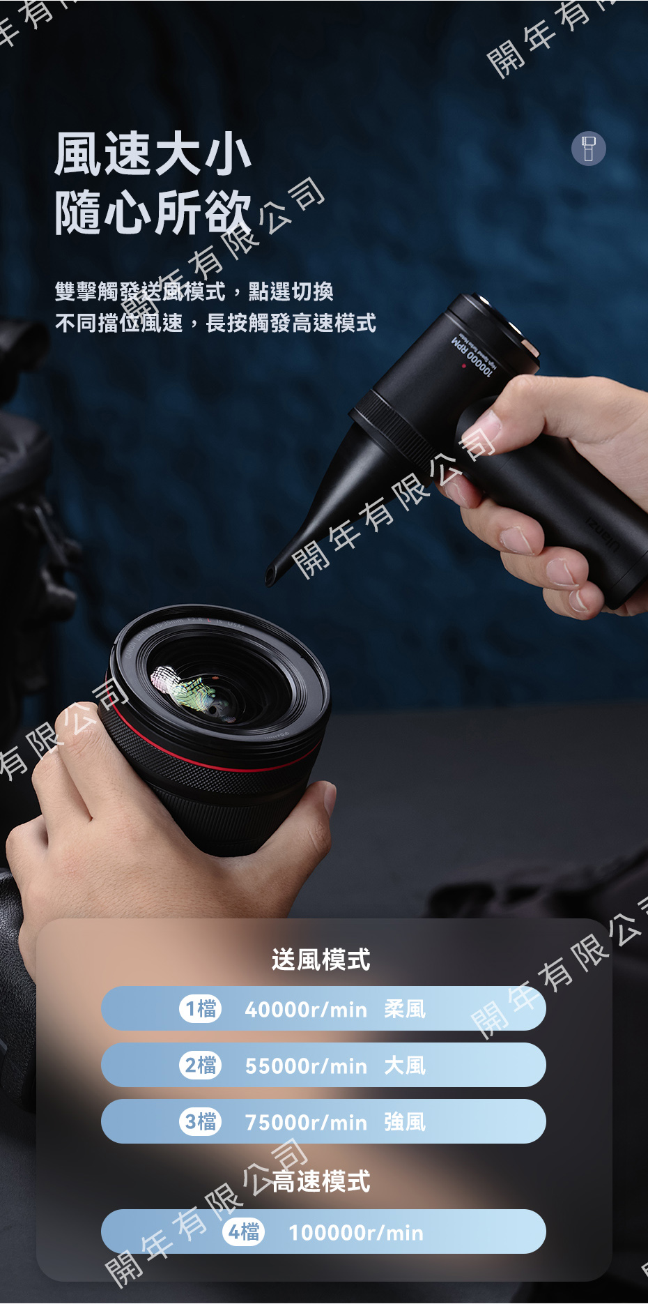 .高速模式高達100000r/min,四檔風速調整