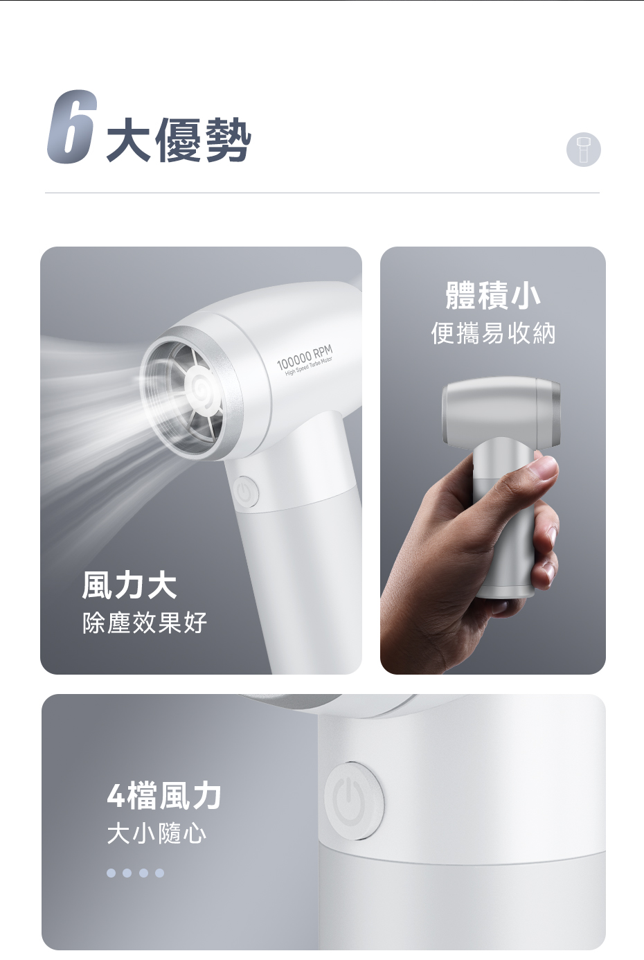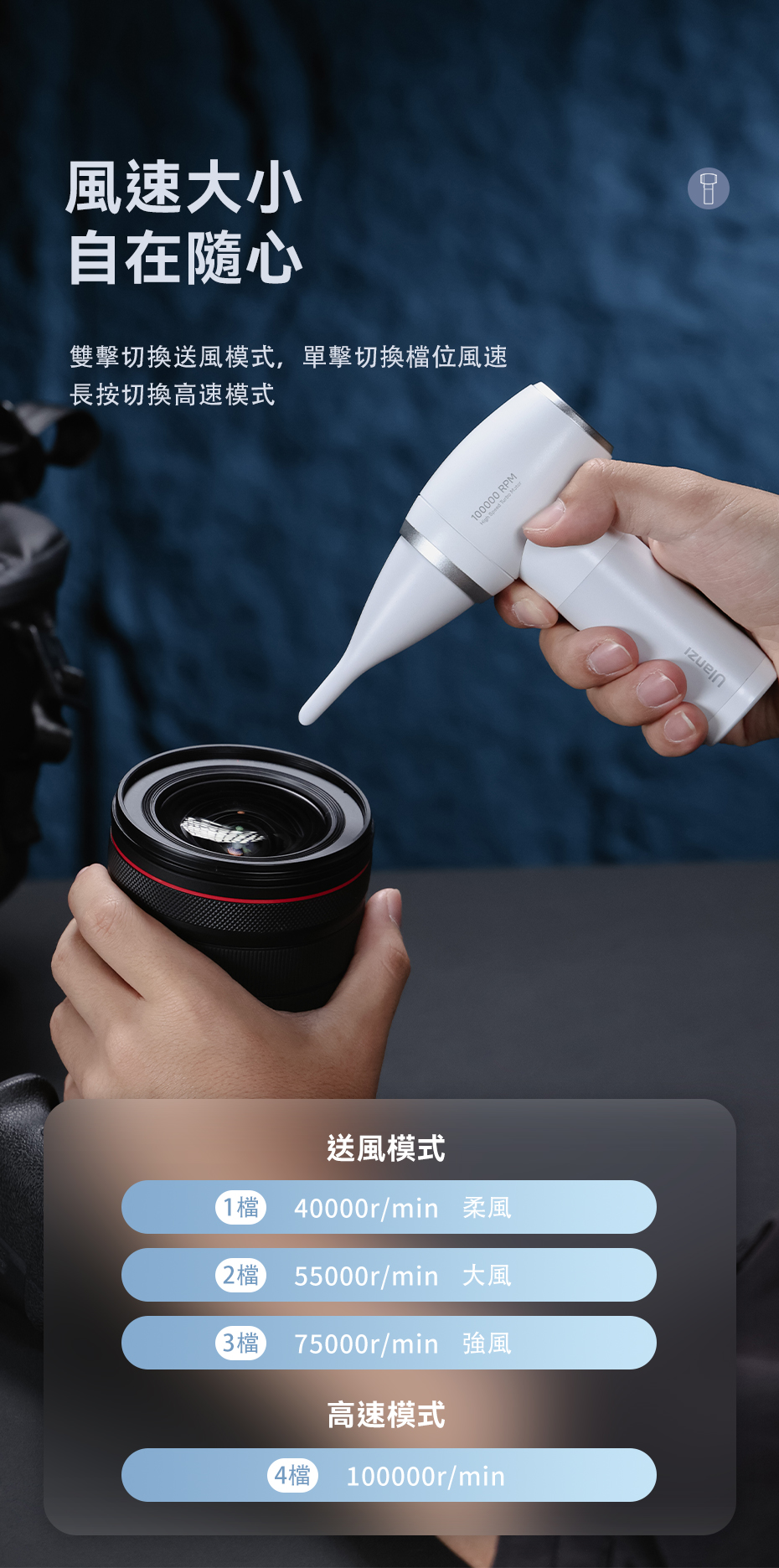 .高速模式高達100000r/min,四檔風速調整