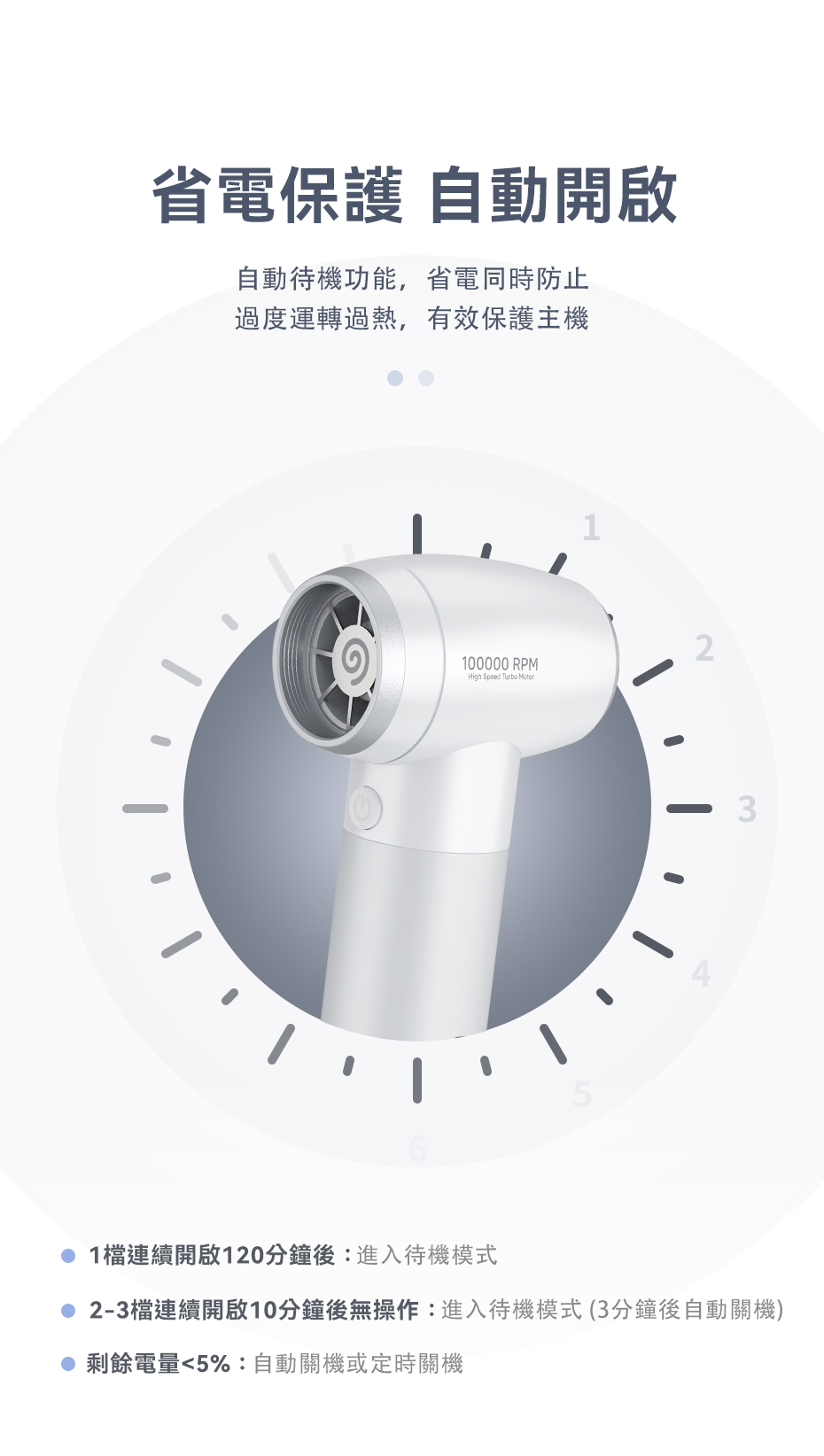 .省電保護,自動待機功能,同時防止長時間運轉過熱