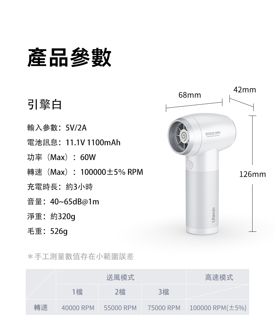 轉速(Max):100000±5% RPM